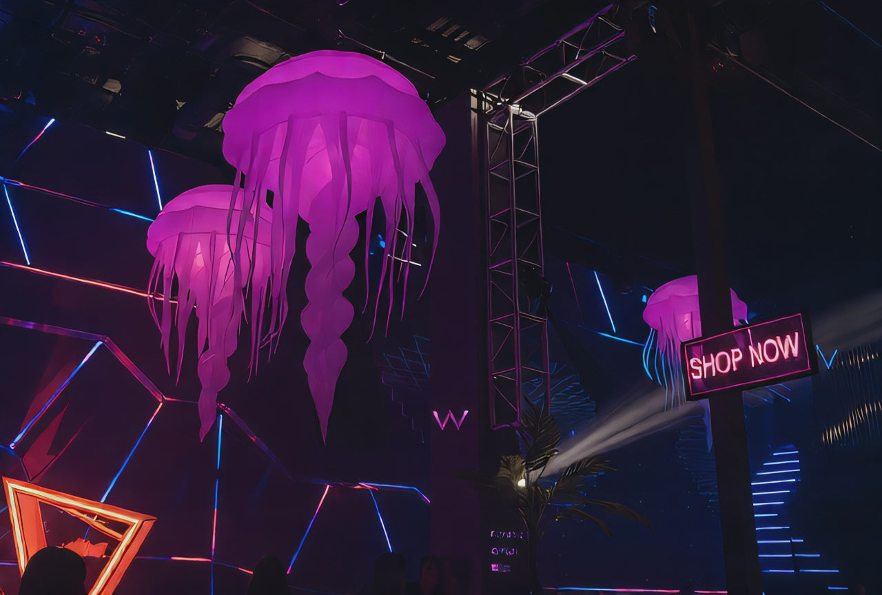 Create a breathtaking underwater atmosphere with our Giant Inflatable LED Jellyfish Medusa Light, the ultimate decorative feature for luxury events, nightclubs, festivals and immersive installations.